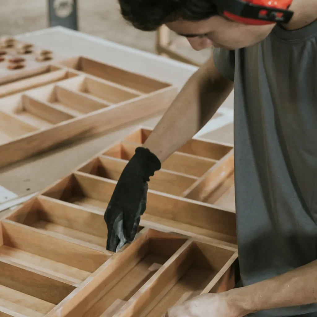 Combinando processos industriais e artesanais, conseguimos otimizar várias etapas de produção. Assim, quando recebemos o pedido, estamos com o processo adiantado, agilizando algumas etapas, e prontos para finalizar cada peça com as medidas e os materiais escolhidos. Isso nos permite garantir prazos curtos e altos volumes de produção, sem comprometer a qualidade de cada produto.